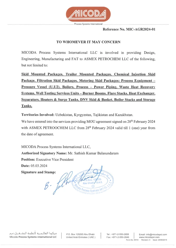 ASMEX PETROCHEM LLC is a leading manufacturer of industrial equipment for a broad range of applications. The company main business lines are: